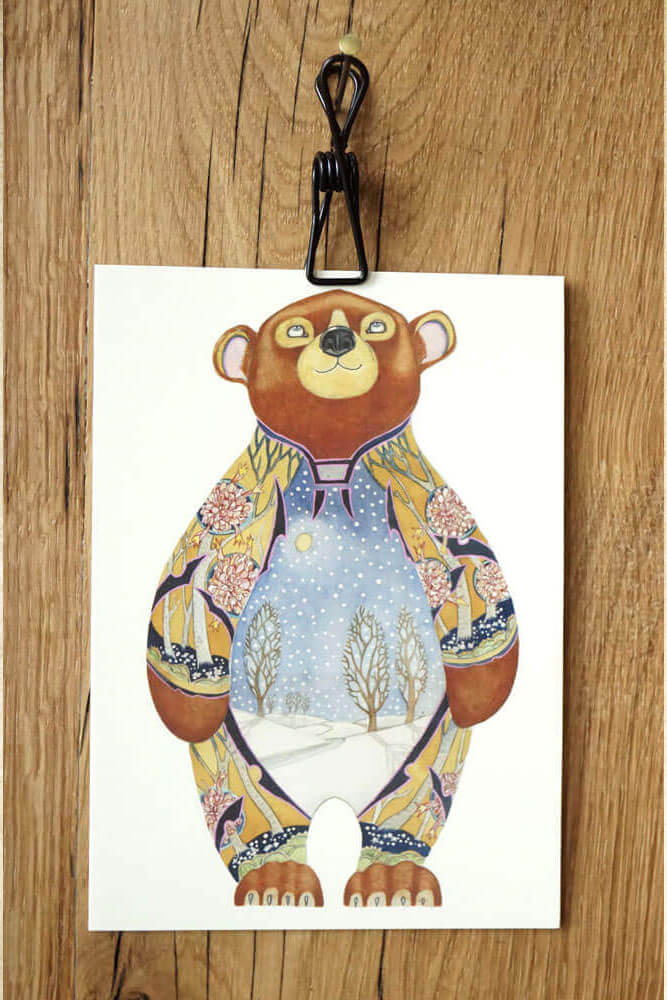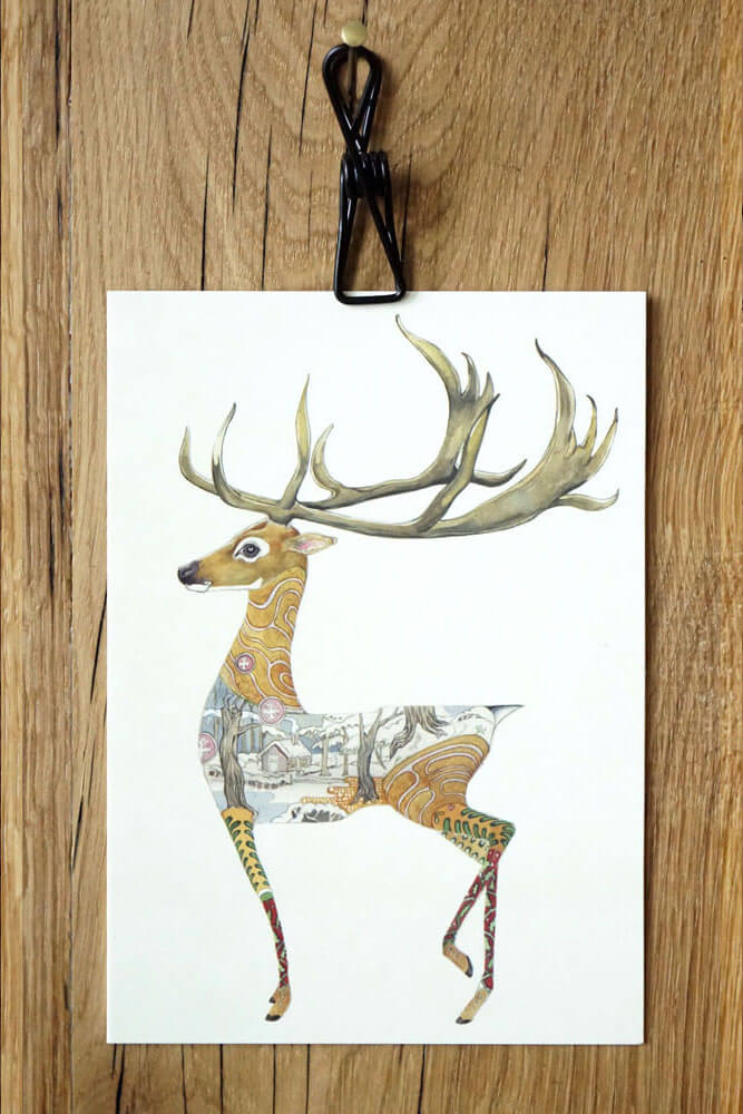 Die Verbundenheit zur Natur und deren Tierwelt, lässt Mackie die Tiere so einmalig zeichnen, in dem er ihre natürliche Umgebung im Tier selbst abbildet - und das auf dem Format einer Grußkarte. Genial!